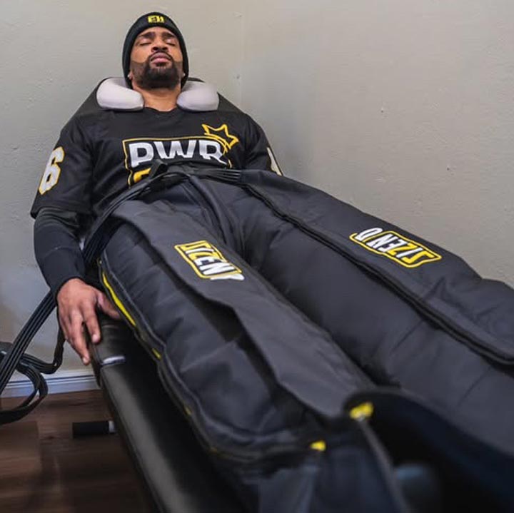 The Sizen pressotherapy uses boots with air chambers that inflate sequentially, from the feet to the thighs, applying rhythmic and controlled compression. This pneumatic massage mimics manual lymphatic drainage, promoting venous and lymphatic return. The result: faster elimination of lactic acid, toxins, and retained fluids. At the same time, it improves circulation and speeds up muscle recovery.